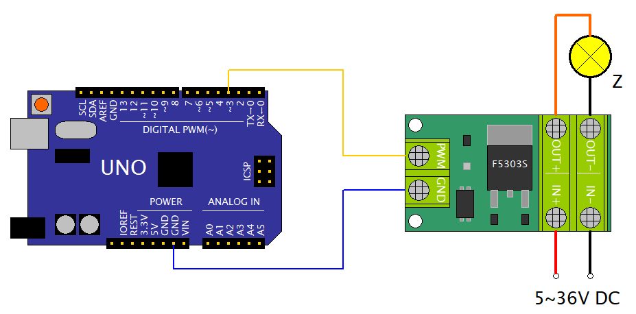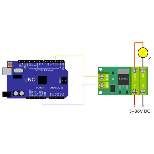 A MOSFET modul használható teljesítmény kapcsolóként vagy DC motorok sebességének, LED világítás fényerejének, fűtőtestek, stb. irányítására.
