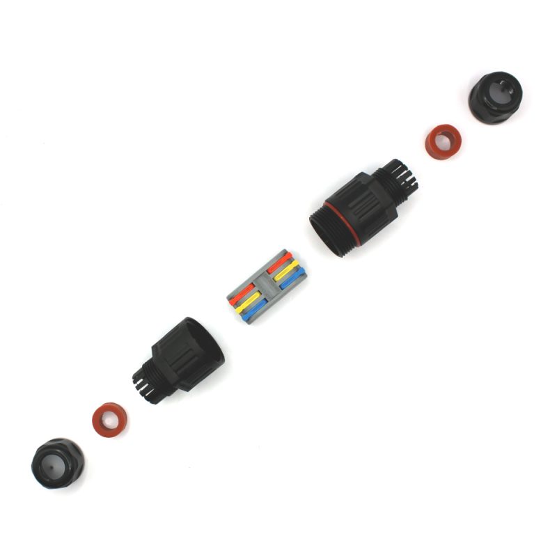Ez a vízszigetelt kábelcsatlakozó maximális megbízhatóságra és gyors telepítésre lett tervezve. IP68 védettséggel ez a csatlakozó teljesen vízálló és porálló, amely ideálissá teszi kültéri használatra és kedvezőtlen körülmények között. Ráadásul szerkezete megkönnyíti a használatát anélkül, hogy speciális szerszámokra lenne szüksége a szereléshez, ami időt takarít meg és csökkenti a telepítés során felmerülő potenciális komplikációkat. Ez az ideális megoldás kábelek összekapcsolására, ahol magas védelmi szint szükséges. A csatlakozó hosszú élettartamú és ellenálló a mechanikai sérülésekkel szemben.