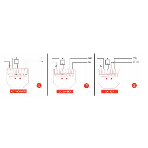 - Táplálási feszültség: 12V DC / 24V-48V DC / 230V AC