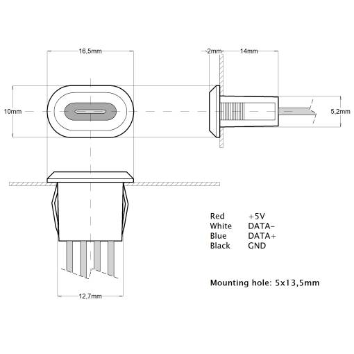 1x USB-C csatlakozó a panelhez - 4 vezeték, fekete