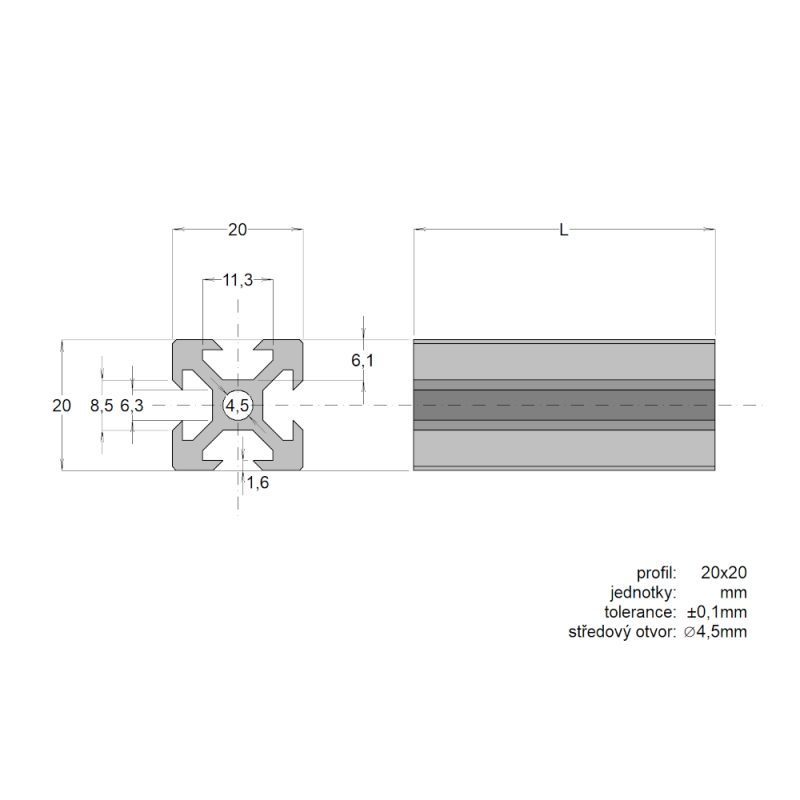 - Dimenziók: 20x20x500mm