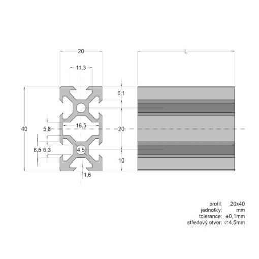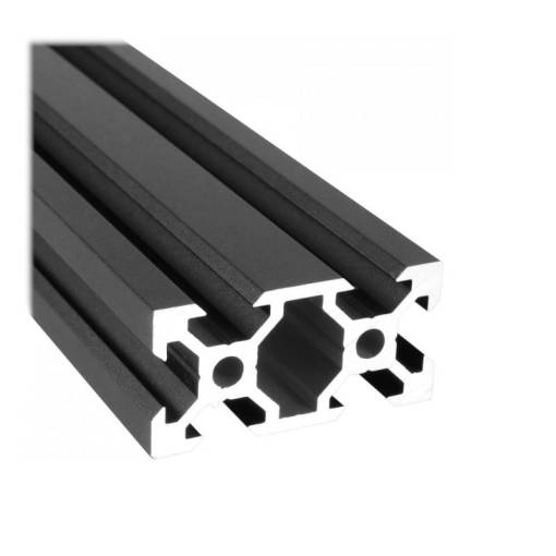 Pontos alumínium profil, amely könnyű, de erős és változatos szerkezetekhez készült. Fekete színben és V-slot-tal, amely a kerekekhez van tervezve.