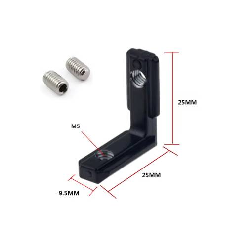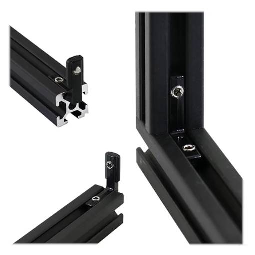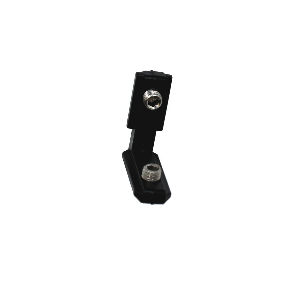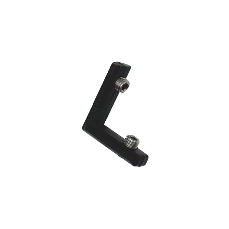 Acél szerelési talp alumínium profilokhoz 20x20. A talp lehetővé teszi, hogy a meglévő alumínium profilt egy másik profillal a megadott szög alatt csatlakoztassuk. A talp része egy süllyesztett csavar. Az egész talp, beleértve a csavarokat, elrejthető a sín terében, így nem zavarja a profil külső felületét a további szereléshez.