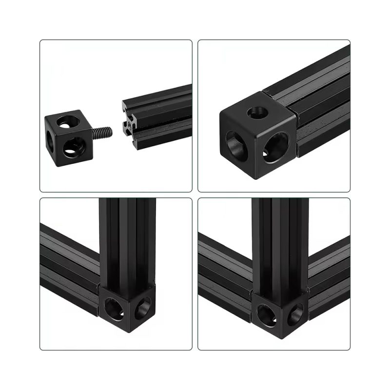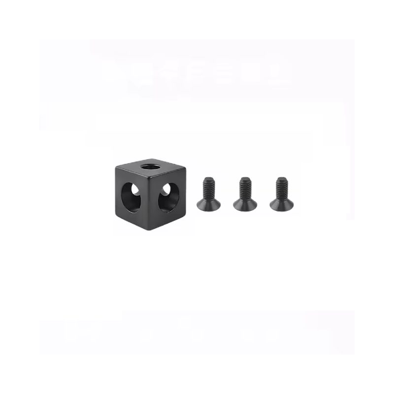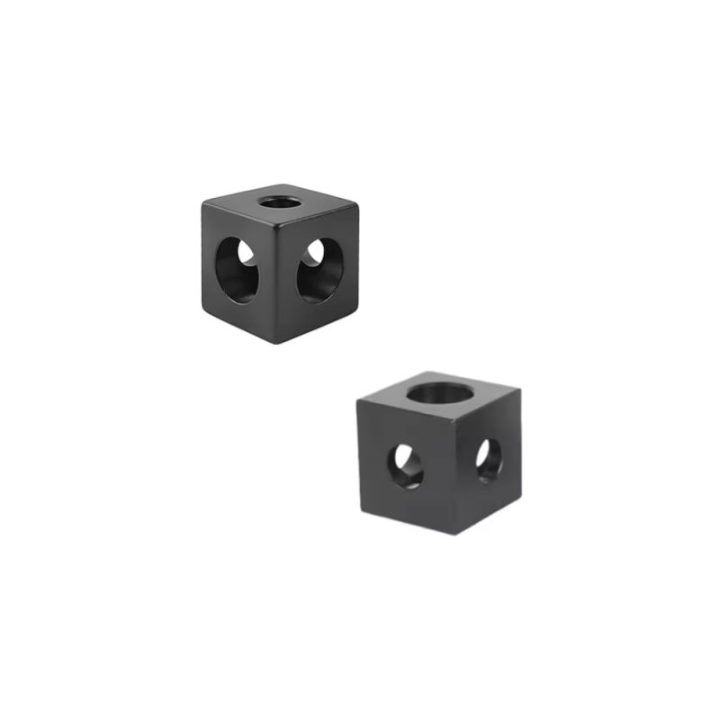 Acél kocka, amely lehetővé teszi három profil derékszögű összekapcsolását. A profil részből telepítve, a profil vágásának ívét követve esztétikus és robusztus szerkezetet hoz létre. Ideális alumínium keret szerkezetek szereléséhez.