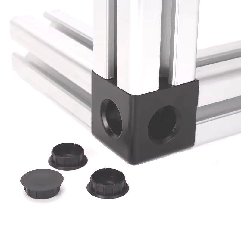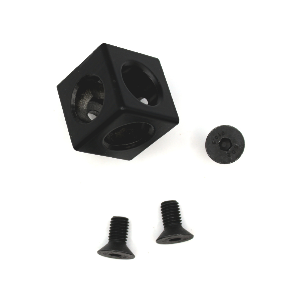 Acél kocka, amely lehetővé teszi három profil derékszögű összekapcsolását. A profil részből telepítve, a profil vágásának ívét követve esztétikus és robusztus szerkezetet hoz létre. Ideális alumínium keret szerkezetek szereléséhez.