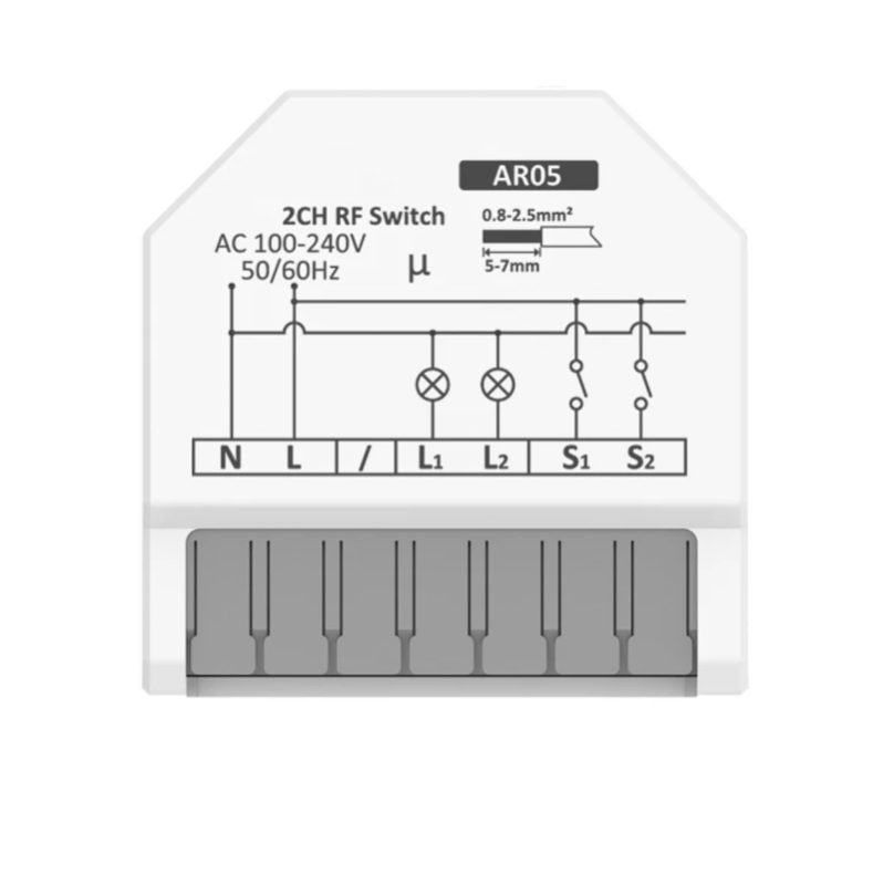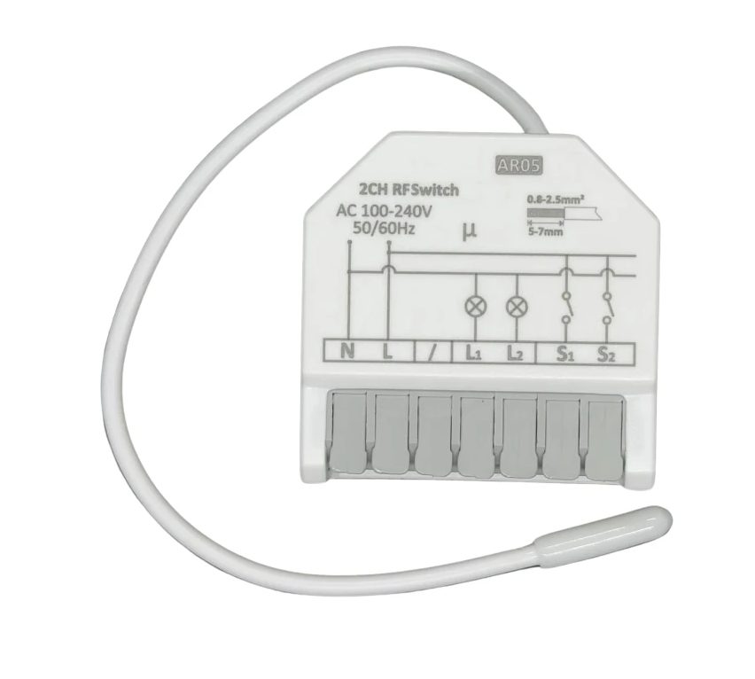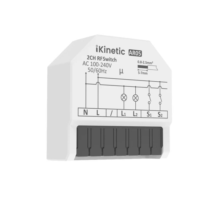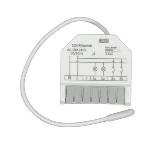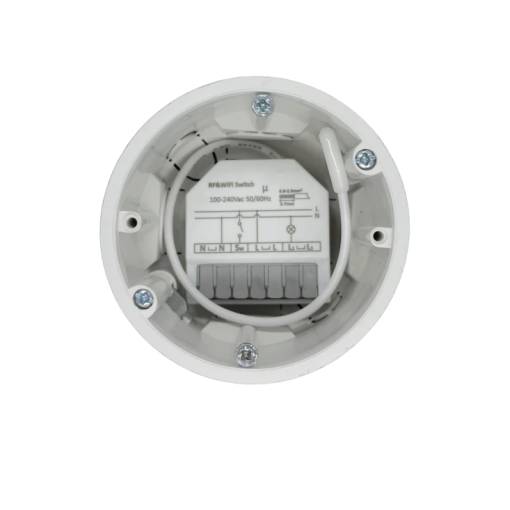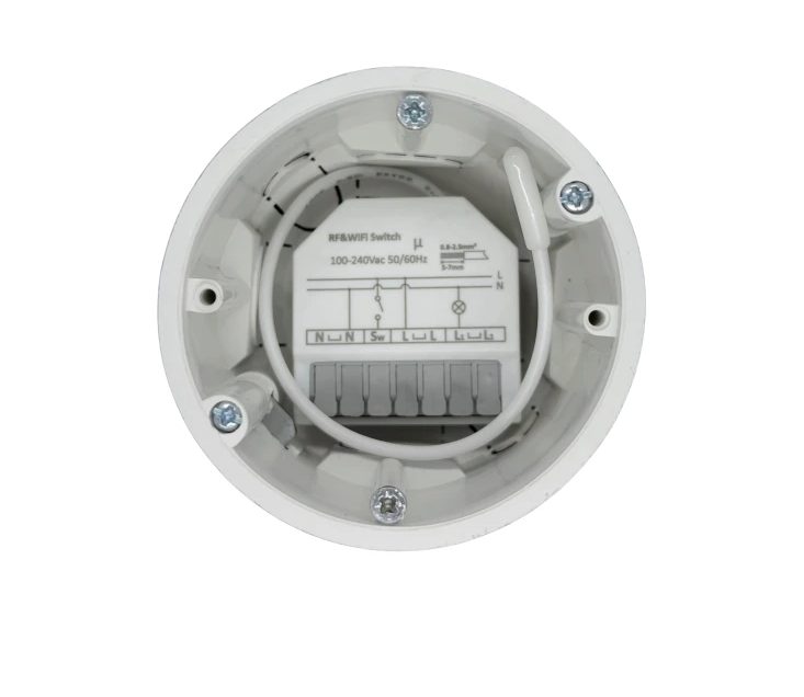 Miniatűr RF433MHz modul, amely telepítésre készült a szerelési dobozba, amely képes átalakítani a hagyományos kapcsolót vagy aljzatot okos eszközzé, amelyet vezeték nélküli távirányítóval vezérelhet.