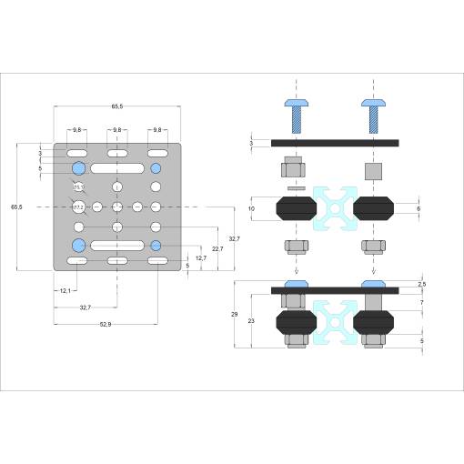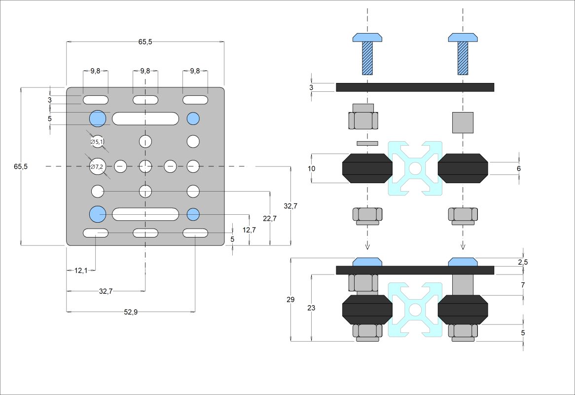 1x anya alumínium profilhoz 30x30 sínbe M5