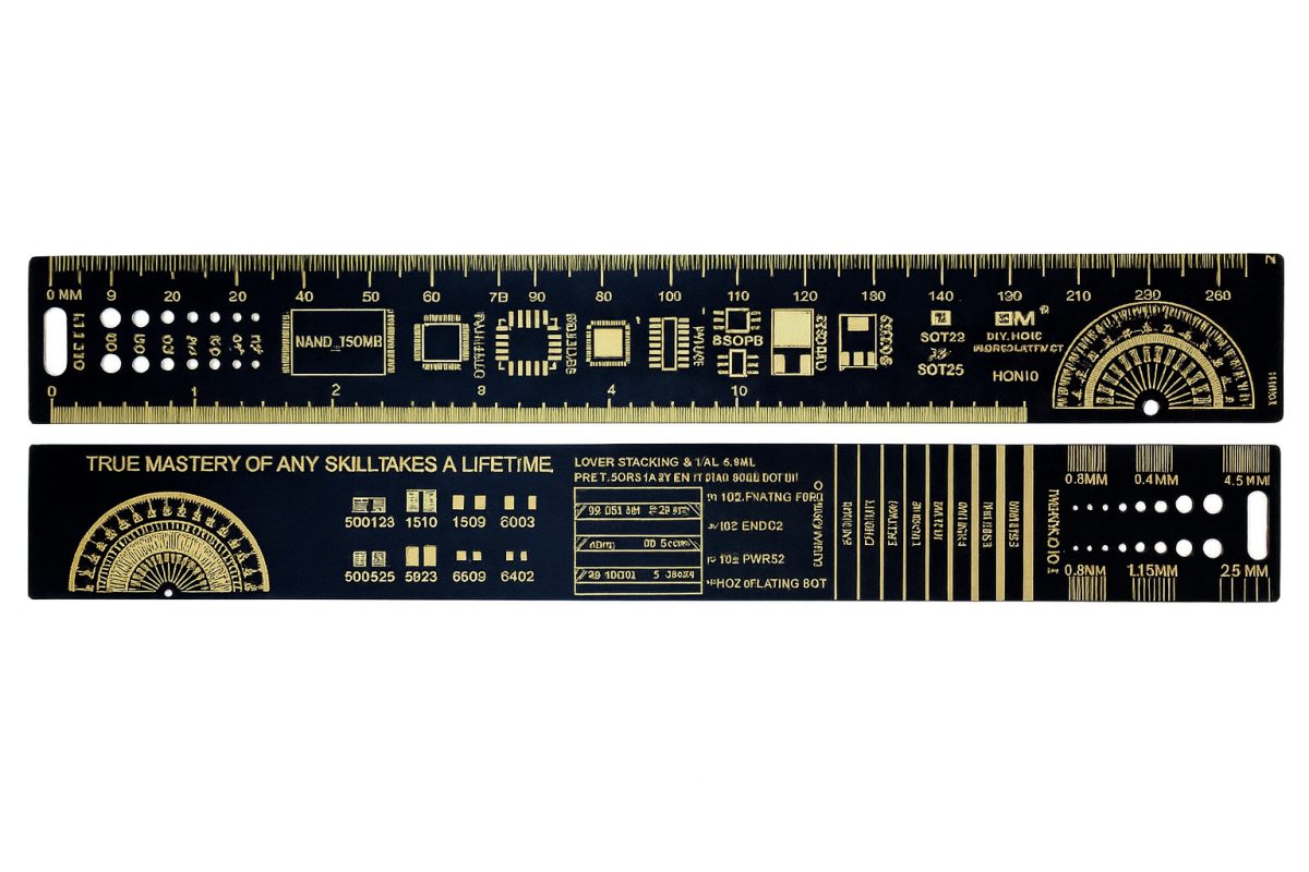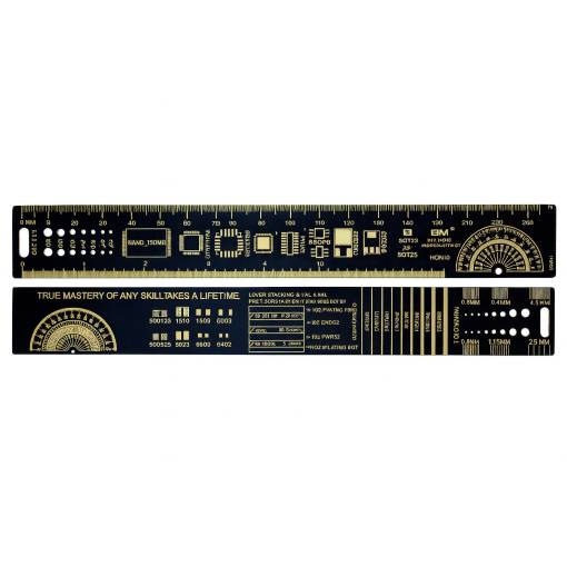 Hosszúságmérő centiméterben és hüvelykben, 25 cm hosszúságig.