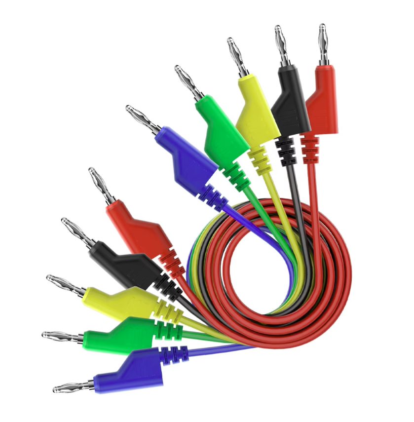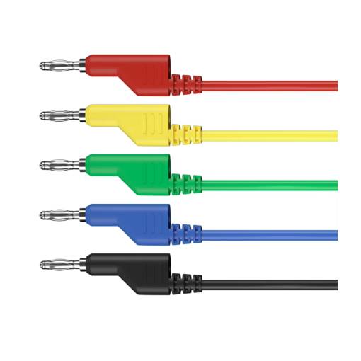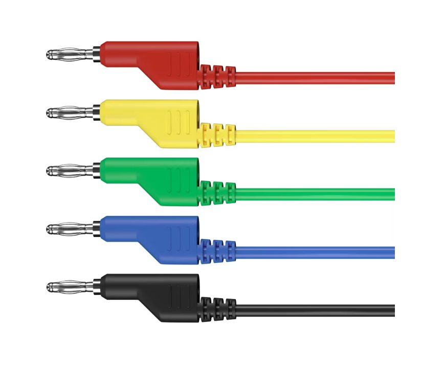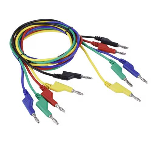 Ez a készlet öt kiváló minőségű mérőkábel 4 mm-es banáncsatlakozókkal mindkét végén. A kábelek 1 méter hosszúak, ami ideális hosszúság a kényelmes munkához az asztalon, laboratóriumban vagy berendezések diagnosztizálásakor. A kábelek összekapcsolhatók is, így teljes áramköröket hozhat létre - ez különösen alkalmas laboratóriumokhoz és berendezések teszteléséhez.