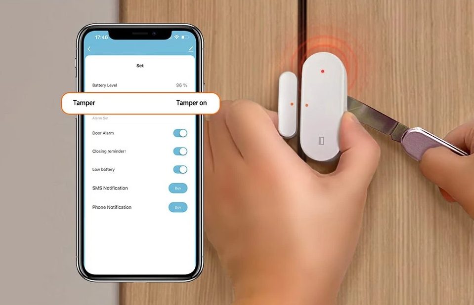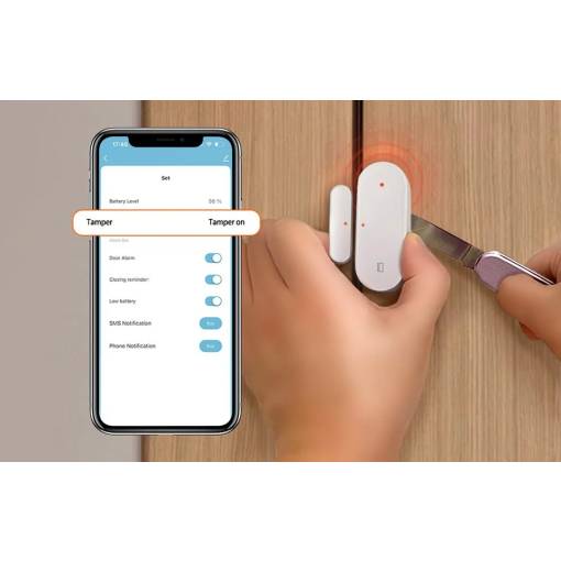 - Tamper riasztás: Védelem a jogosulatlan manipuláció ellen. A hátsó kapcsoló segítségével az érzékelő azonnal értesít, ha valaki megpróbálja eltávolítani vagy leválasztani a keretről (támogatott a Smart Life alkalmazásban).
