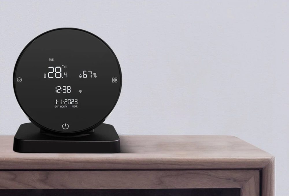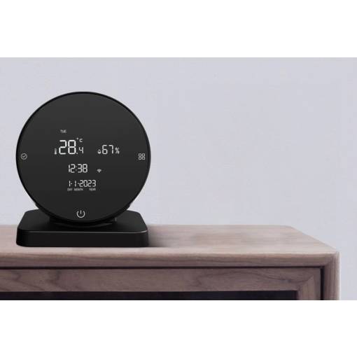 WHS20S egy multifunkcionális eszköz, amely digitális hőmérőt, páratartalom mérőt és univerzális infravörös adót integrál a háztartási elektronika irányításához. A mért értékek egy háttérvilágítású LCD kijelzőn jelennek meg, és egyidejűleg WiFi-n keresztül továbbítják a Tuya vagy Smart Life mobilalkalmazásba. A hálózatra való csatlakozás után az eszköz automatikusan szinkronizálja a pontos időt és dátumot az internetről, így megszünteti a kézi beállítás szükségességét. Az eszköz forgatható mechanikus kerettel van felszerelve, amely a kijelző fényerejének manuális szabályozására és a szenzorok kalibrálási módba való belépésére szolgál. Az eszköz további funkciókkal is rendelkezik, például órával, két független ébresztőórával, stopperrel és visszaszámlálóval.