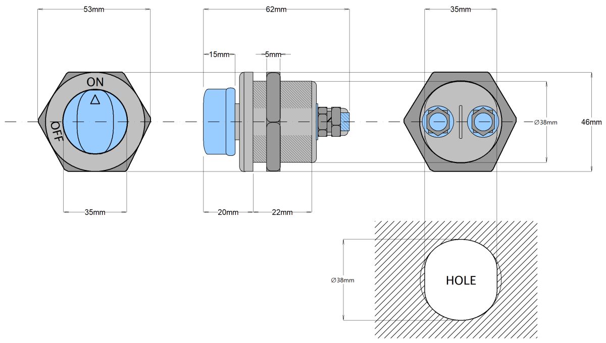 Ideális 12V és 24V akkumulátorok leválasztására a fogyasztókról és a teljesítménykörök megszakítására.