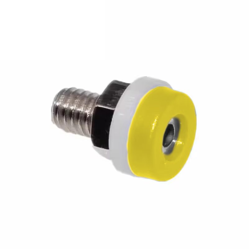 Banán csatlakozó 2mm-es banán csatlakozókhoz. Robusztus fém kivitel rozsdamentes felülettel és anyával. Panelbe szerelésre alkalmas.