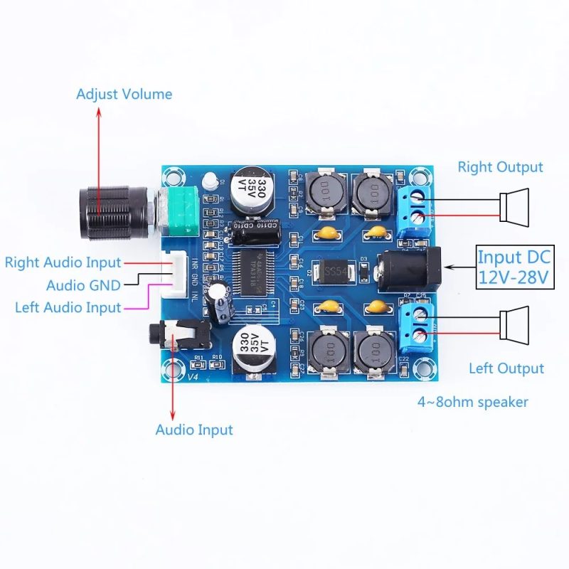 1x XH-M312 TPA3118 - 2x45W, 12-28V DC erősítő modul