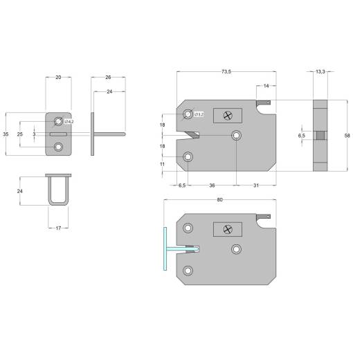 - Telepítési nyílások: Ø3,2mm csavarhoz süllyesztett fejjel.