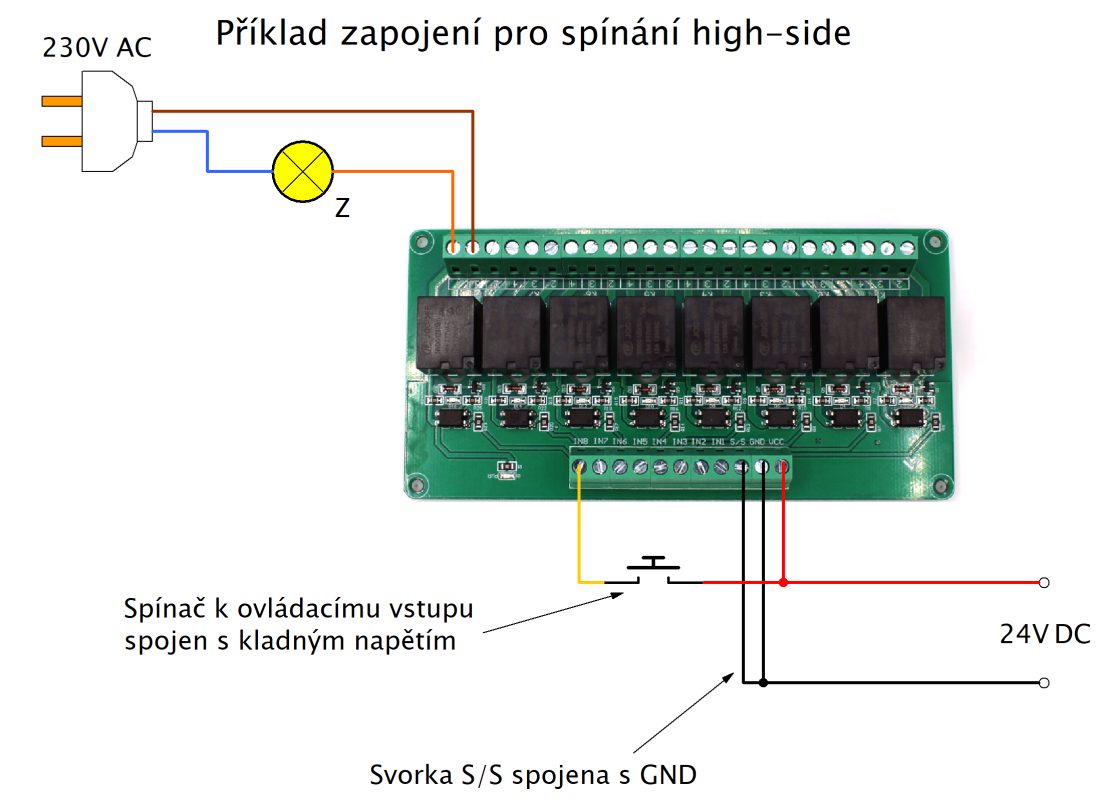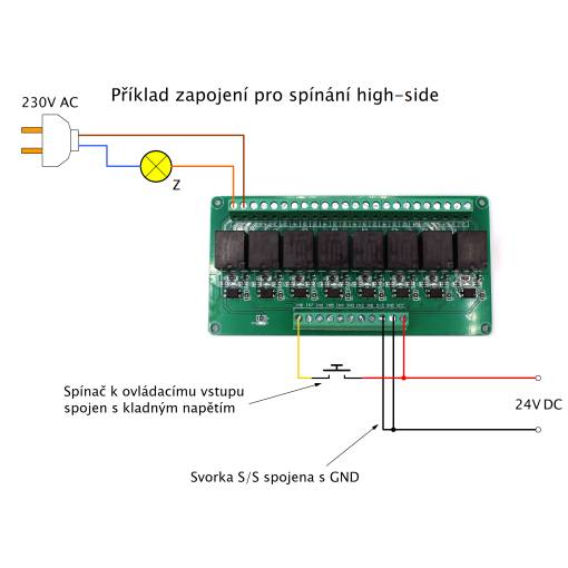 Relé modul DIN sínen. Specifikáció: 8 csatorna Tápegység: 24V Relé: 49VAC 10A A csomag tartalmaz egy relé modult.