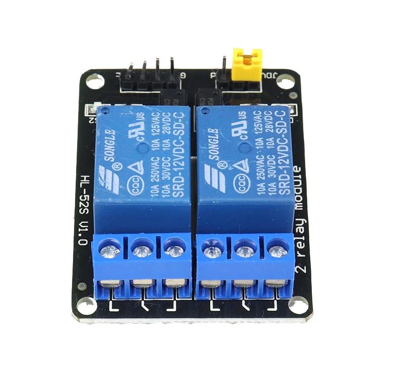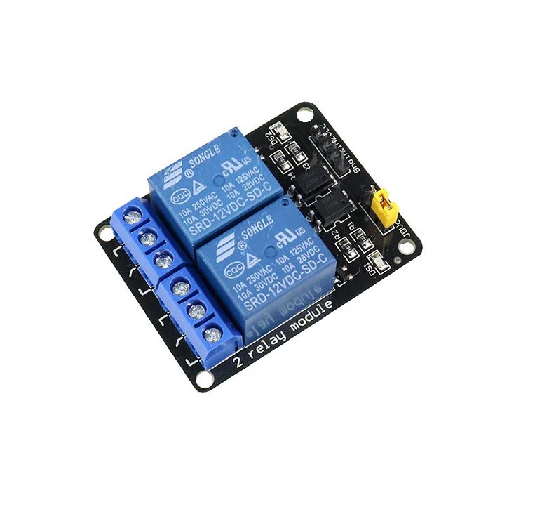 12V DC 2 csatornás relé modul optikai elválasztással.