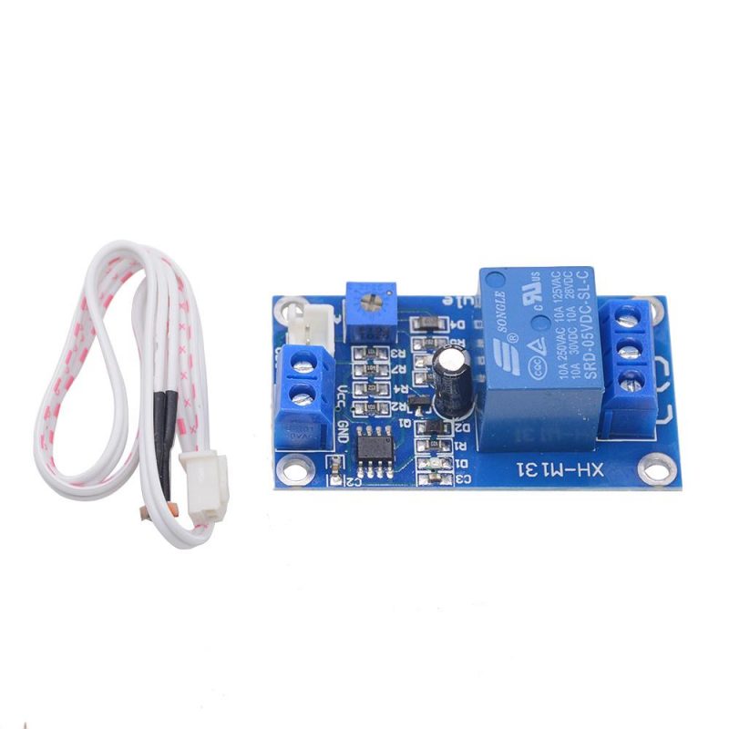Relé modul fotorezisztorral. A relé akkor kapcsol be, amikor a környezeti fény intenzitása túllépi a trimmerrel beállított értéket.