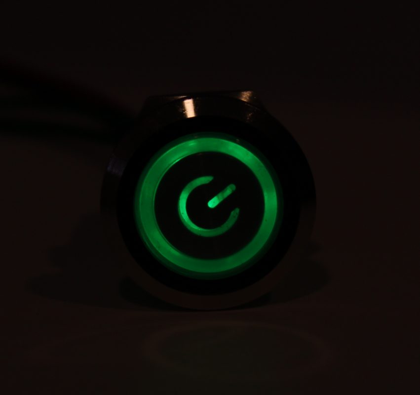 A csomag egy LED IP68 kapcsolót tartalmaz - zöld háttérvilágítással, 19 mm, 12 - 24V.