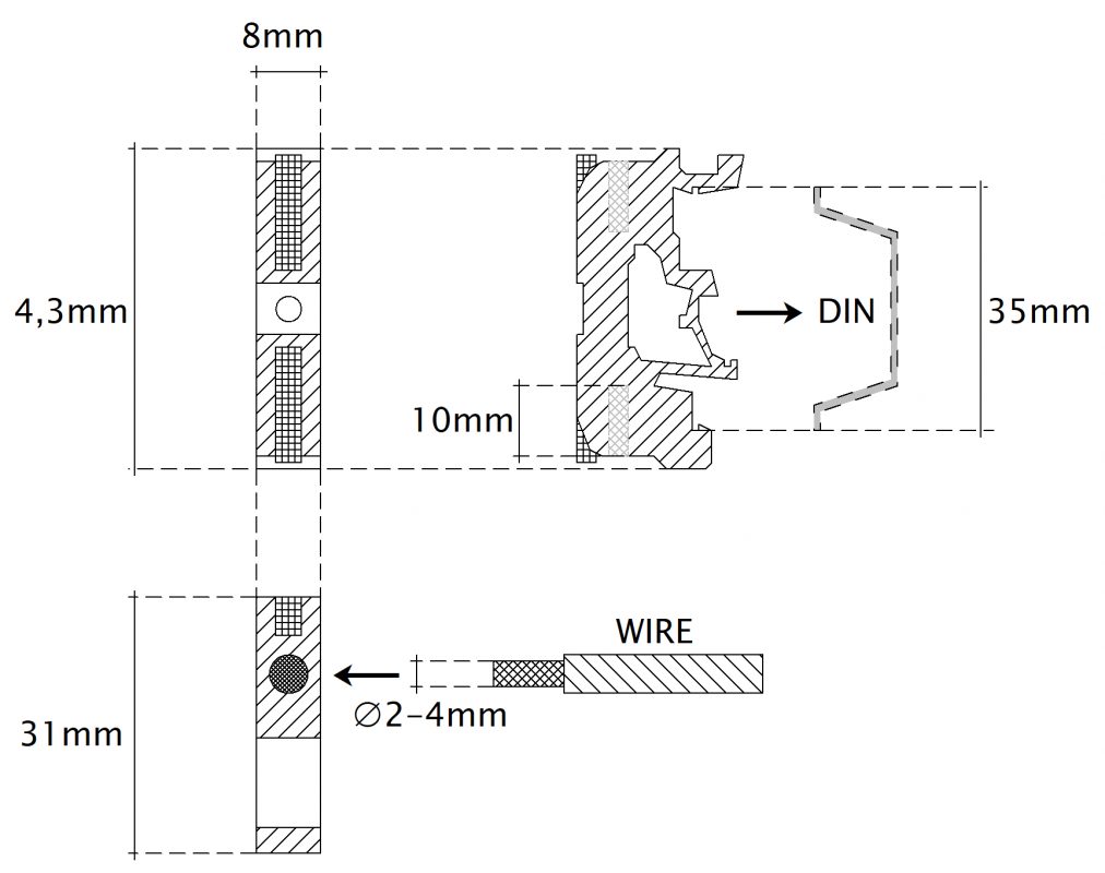 Ez a gyorscsatlakozó kifejezetten DIN sínmegtartásra lett tervezve 35x7,5 mm méretben