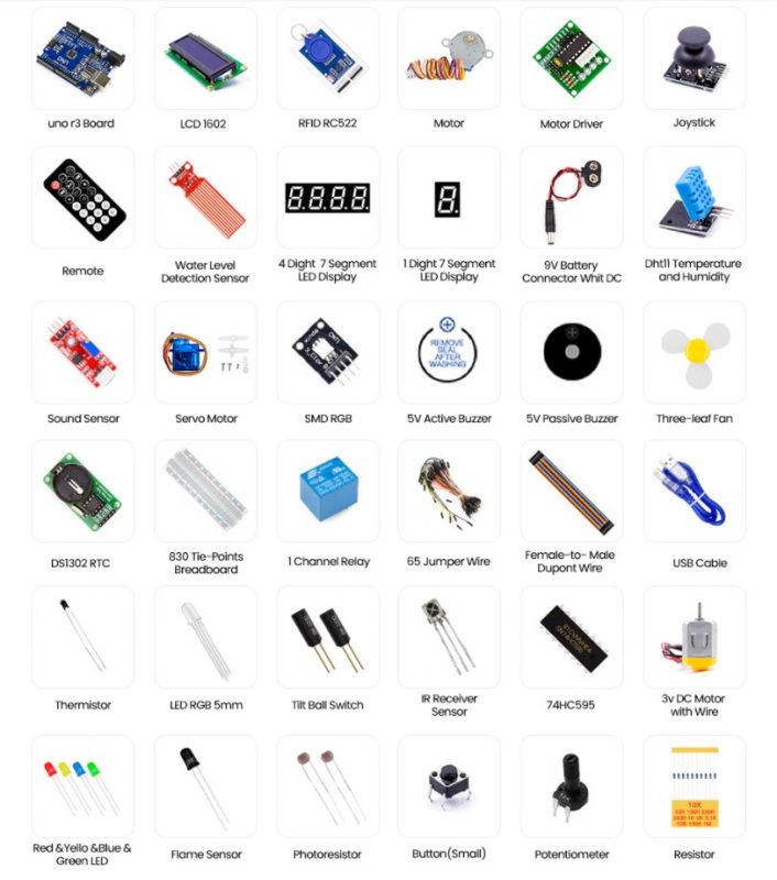 - Különböző elektronikus modulok és alkatrészek, amelyek alkalmasak Arduino fejlesztési célokraáu00a0