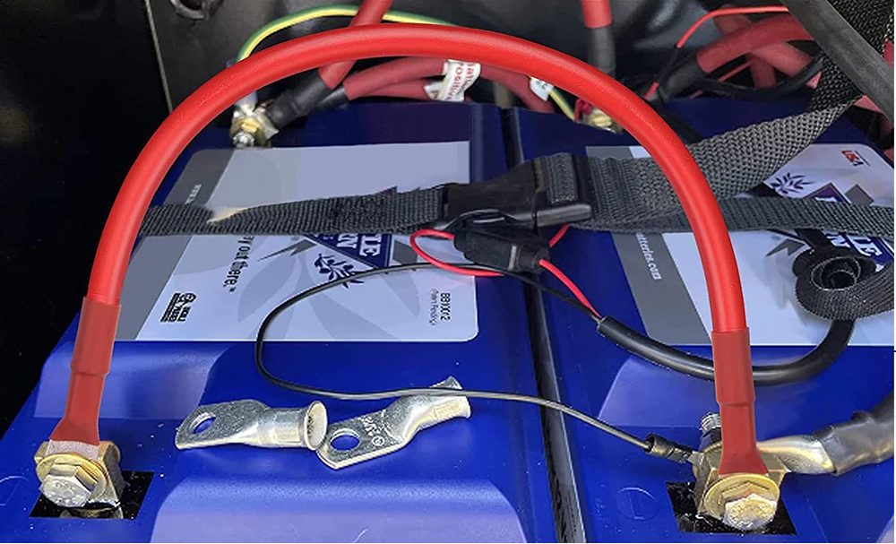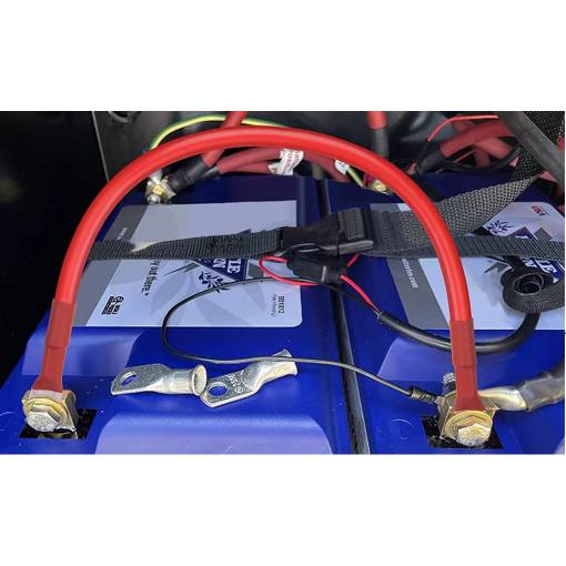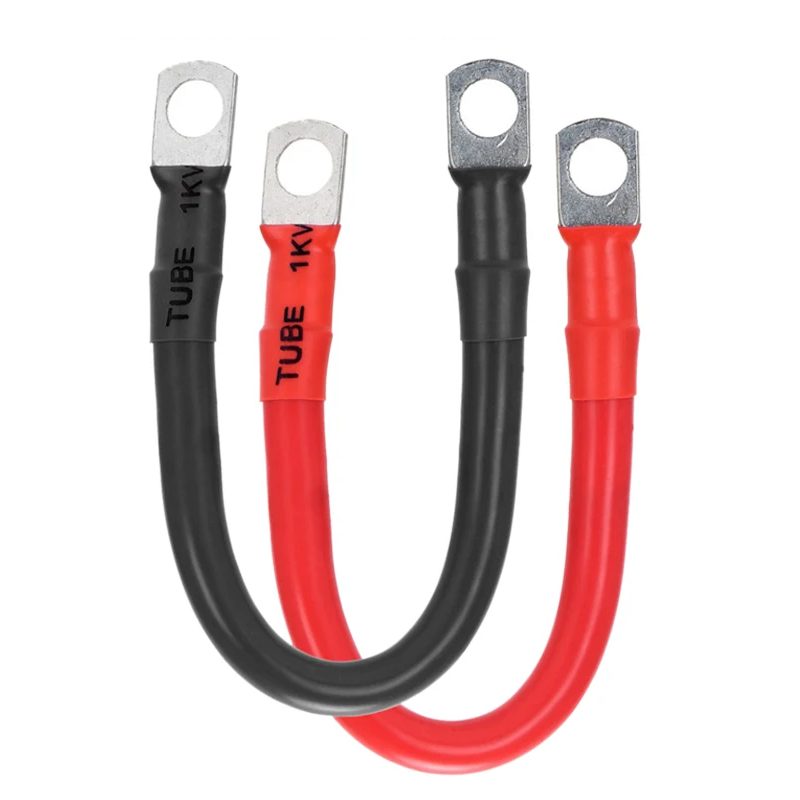 Propojovací kabely k baterii s očky SC35-8. Specifikace: Délka: 20 cm Průřez kabelu: 4AWG / 25 mm2 Průměr očka: 8 mm Hmotnost: 180 g Balíček obsahuje jeden pár propojovací kabelů k baterii s očky.